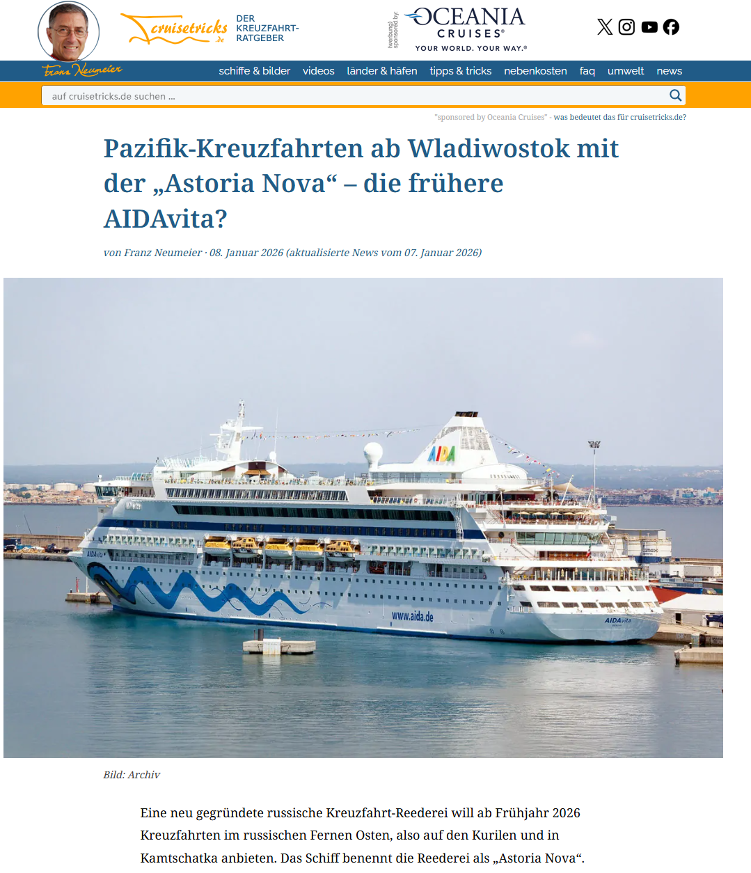 近日最新消息称,今年3月,这条船将转手给俄罗斯运营商,经营从海参崴到库页岛、勘查加半岛的俄罗斯远东航线。